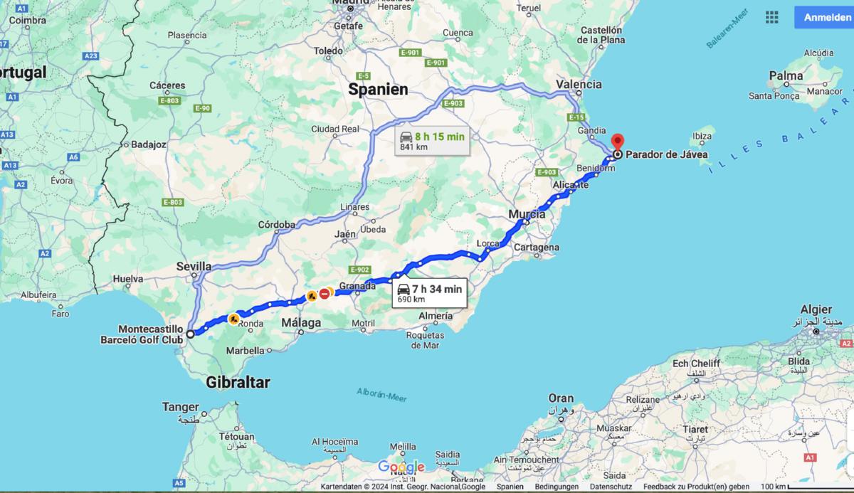 Jetzt sind wir in Jerez de la Frontera angekommen und haben eine Hotelunterkunft mit eigenem Golfplatz in unmittelbarer Nachbarschaft zur Motorsport Rennstrecke "Circuito de Jerez" bezogen. Hotel und Lage gefallen uns gut.